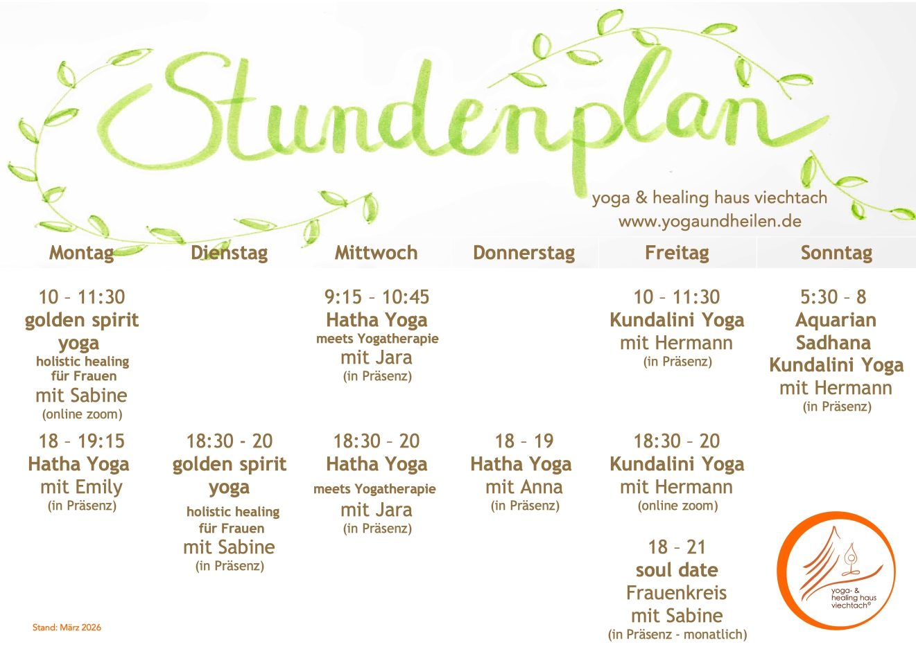Inzwischen unterrichten einige Lehrer im yoga & healing haus. Deswegen ein Stundenplan.